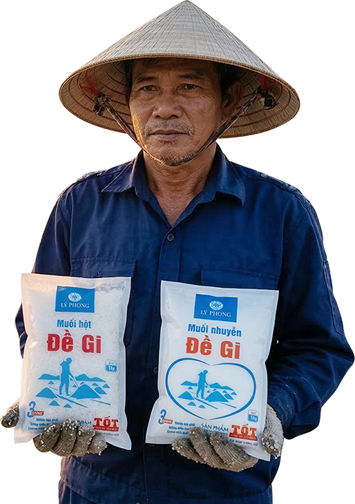 Muối Đề Gi mang thương hiệu Lý Phong được sản xuất theo phương pháp hiện đại, với kỹ thuật trải bạt giúp muối được kết tinh từ nước biển sạch mà không lẫn tạp chất.